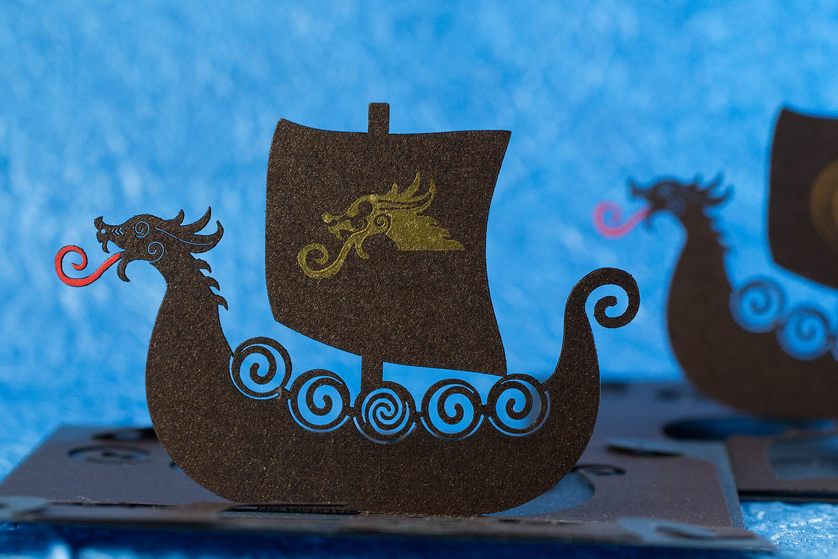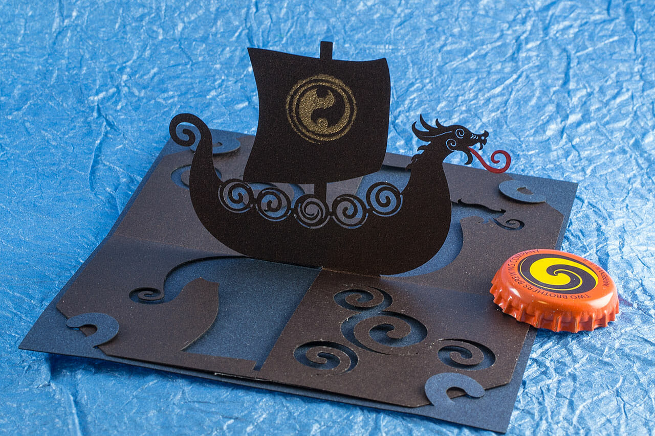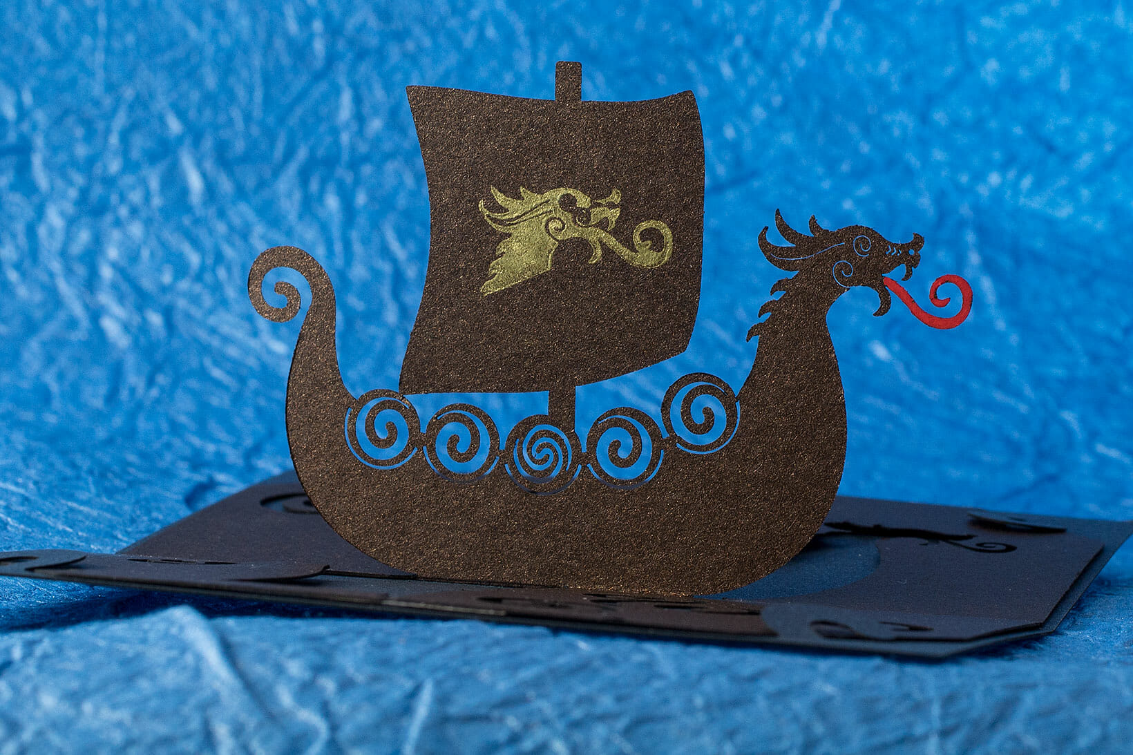 This Viking longship OA/kirigami pop up card was some time in the making. I’m quite happy with it, especially the dragon head.