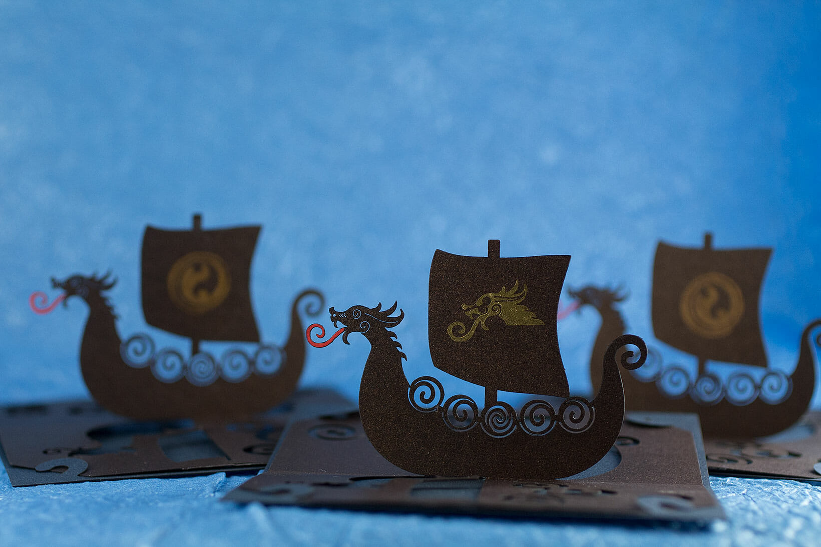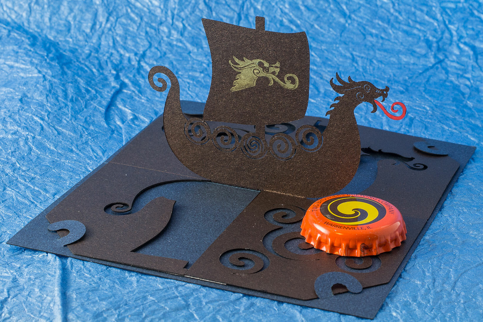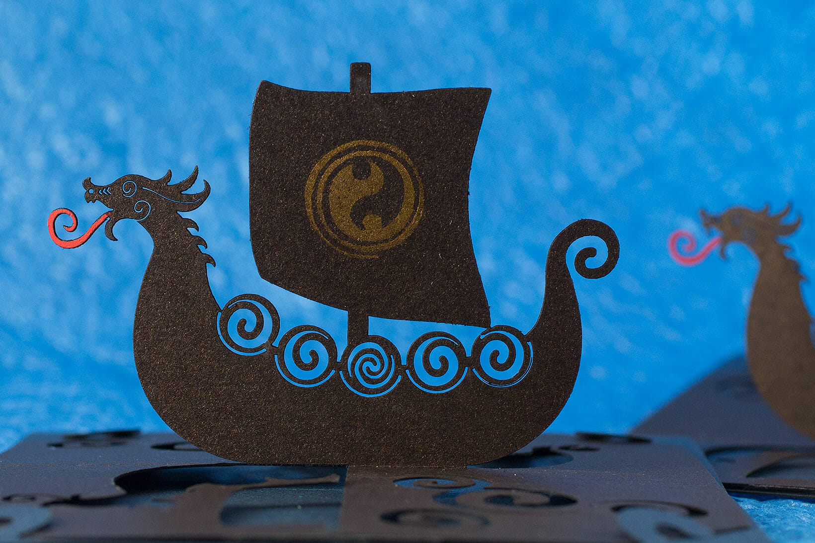 This Viking longship OA/kirigami pop up card was some time in the making. I’m quite happy with it, especially the dragon head.
