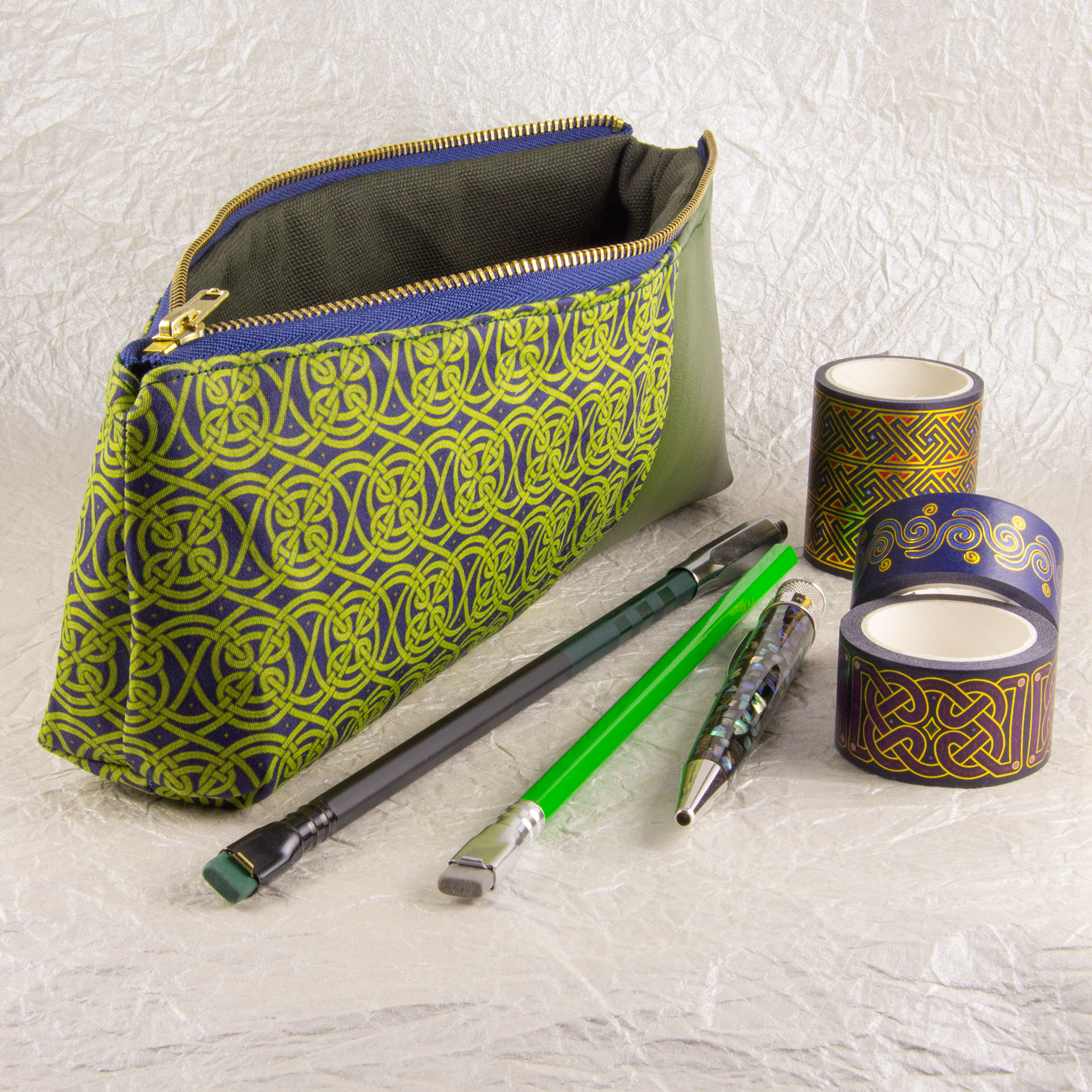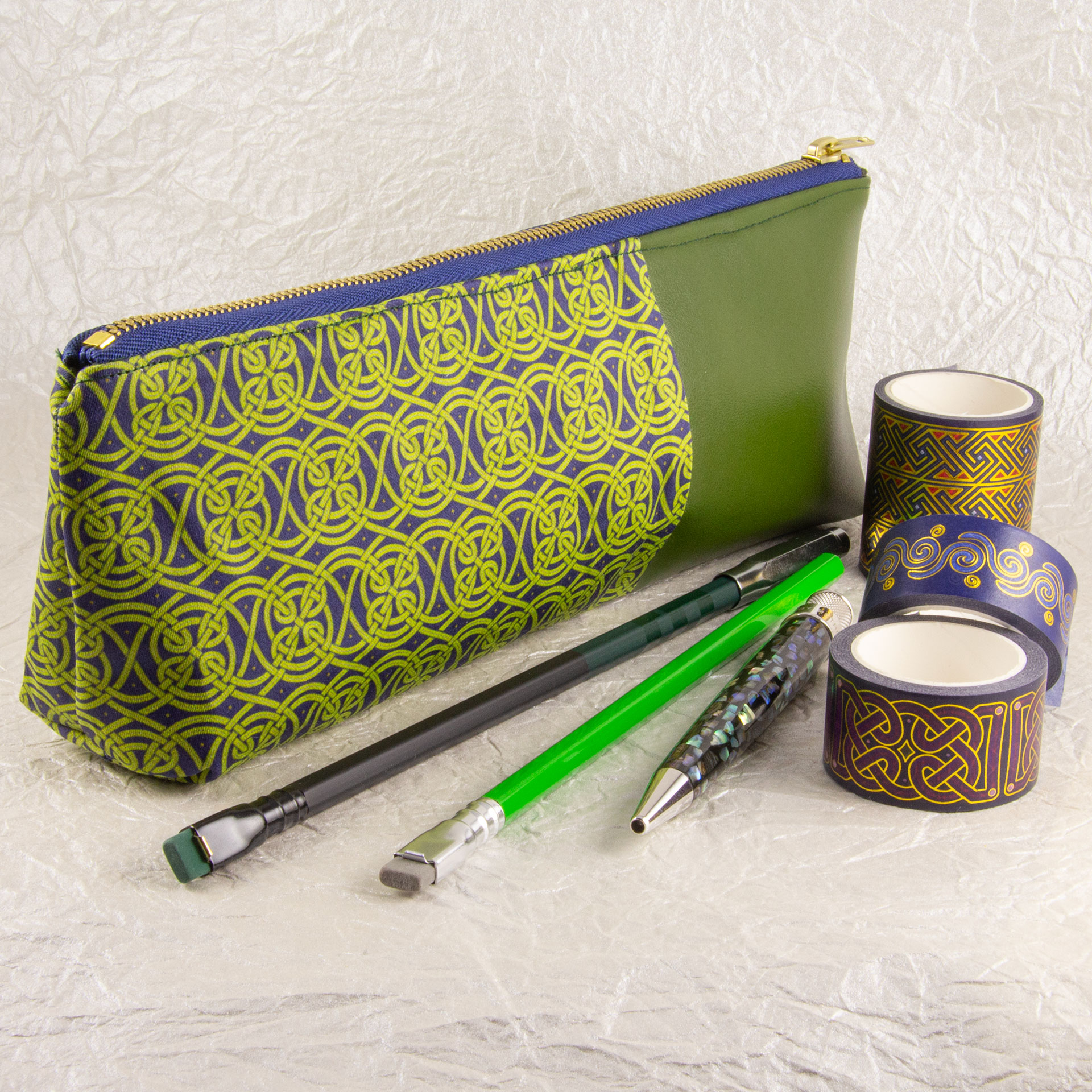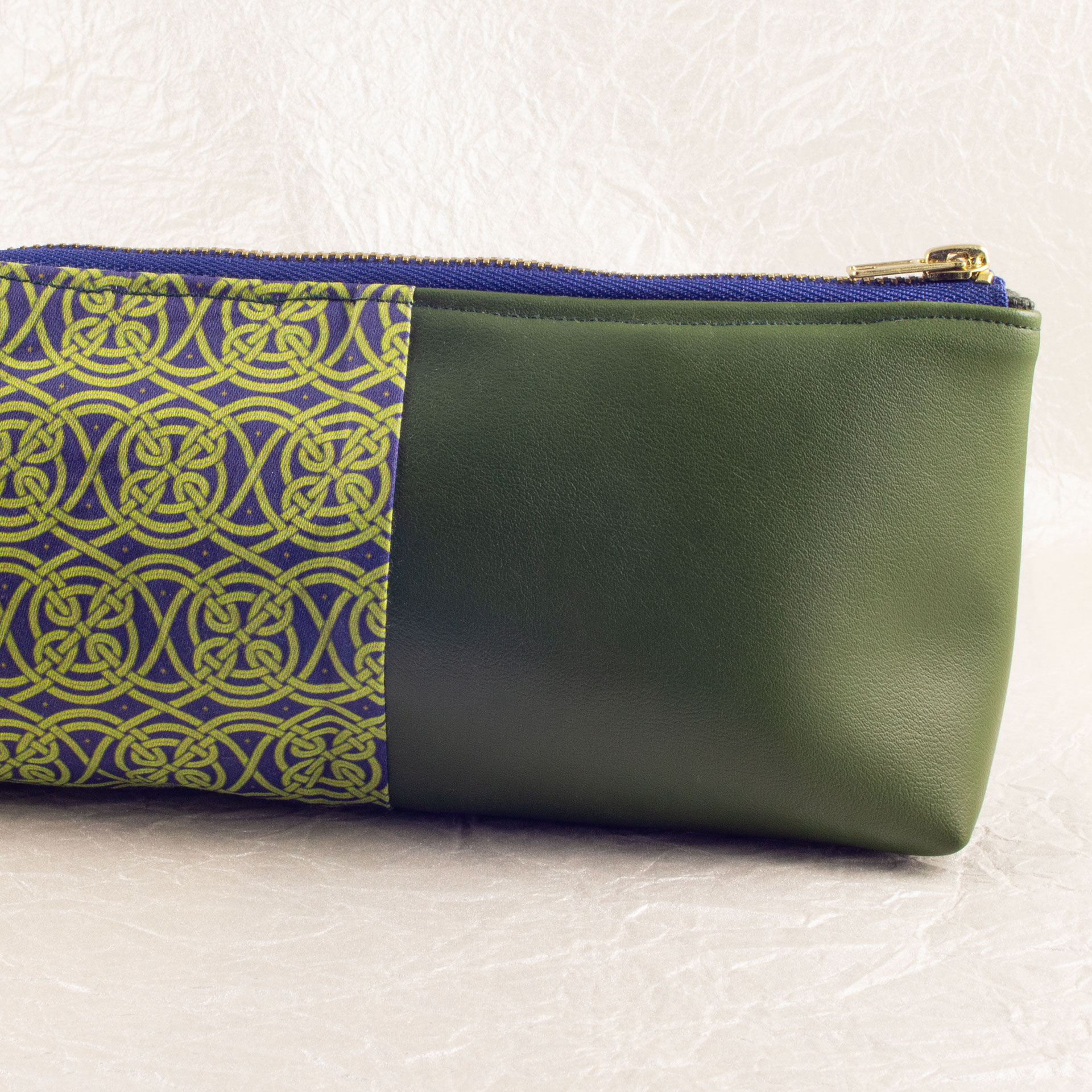 I saw some pencil pouches somewhere, and knowing some people on their way back to school soon, I thought it would be fun to make some with the Celtic art fabric I designed and the eco-friendly cactus leather.