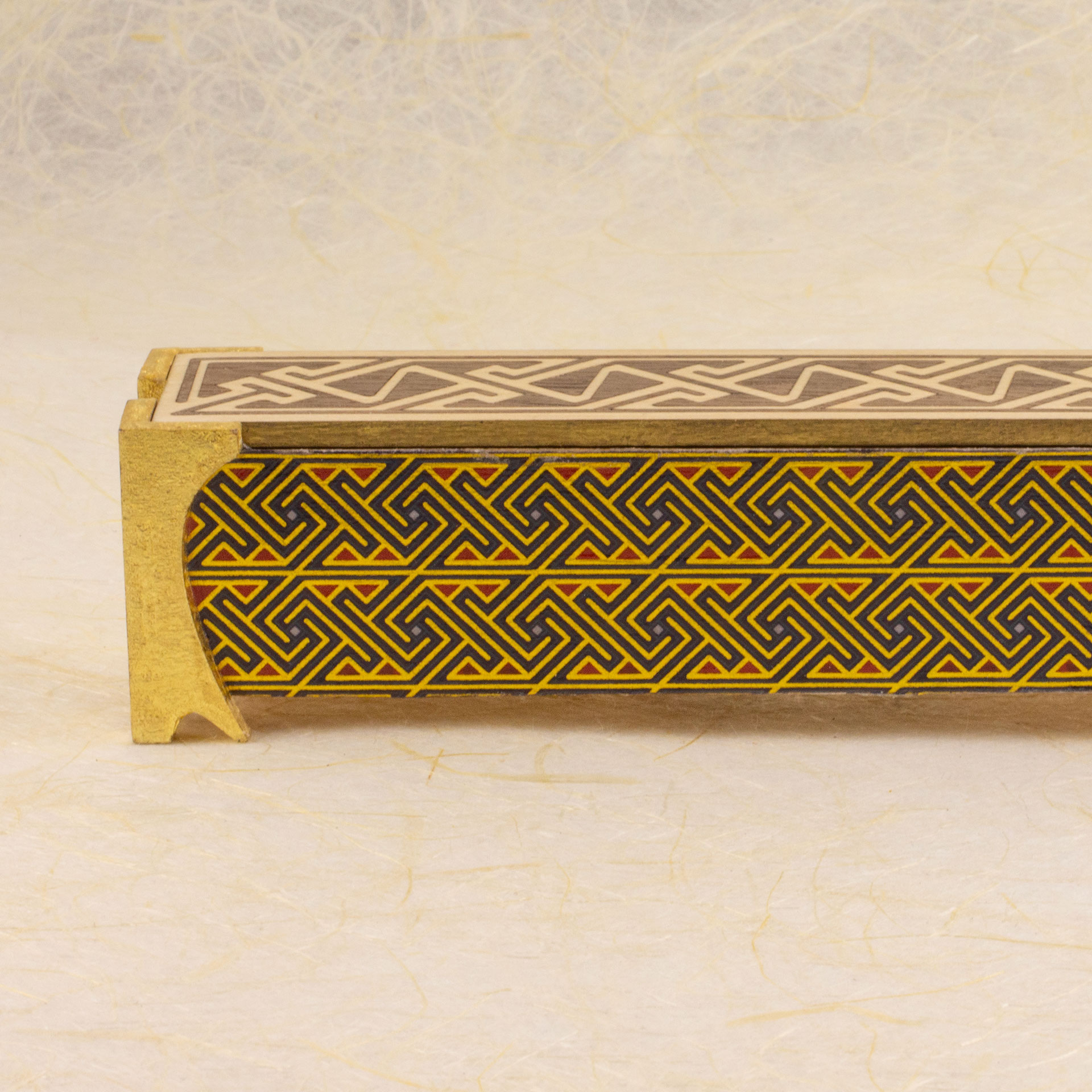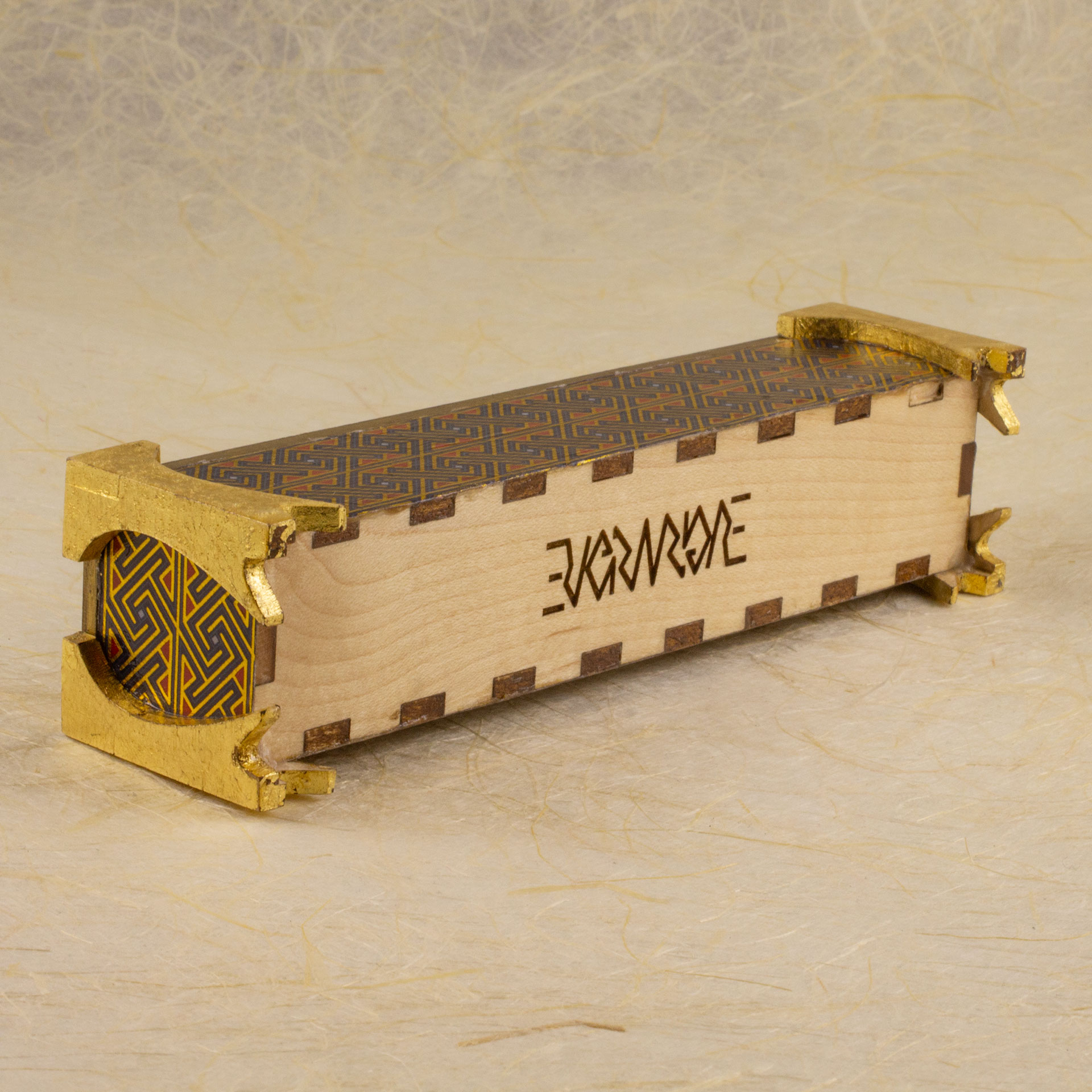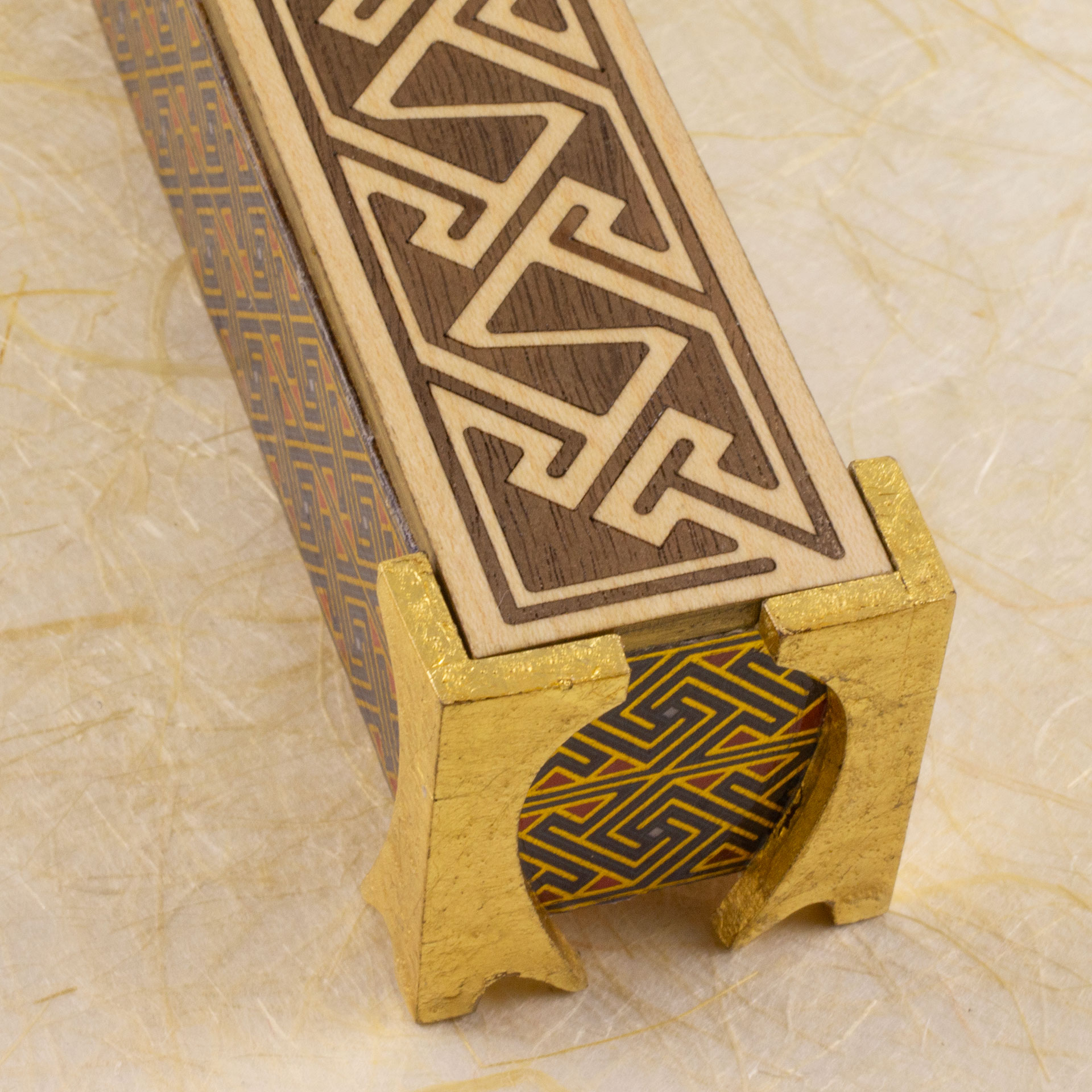 This design adds some legs and a wood inlay lid with a different key pattern design.