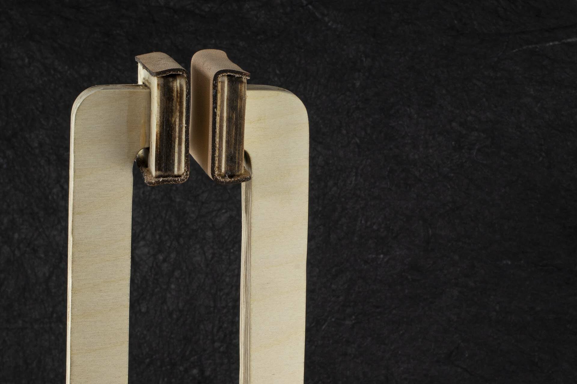 My first attempt at saddle stitching on a project made the value of a stitching pony immediately clear to me for that. They also seem to be pretty useful for softly clamping other small things on which one is working. Commercially-made stitching ponies are not particularly expensive or hard to find. I was thinking about the springiness of plywood and, how easy it might be to make something with a simple cam clamp. I gave it a try and, this worked out even better than I expected. I was actually a bit sloppy building this because I assumed it was going to be a prototype I threw away. It works great and, seems to be everything I need for now, though.