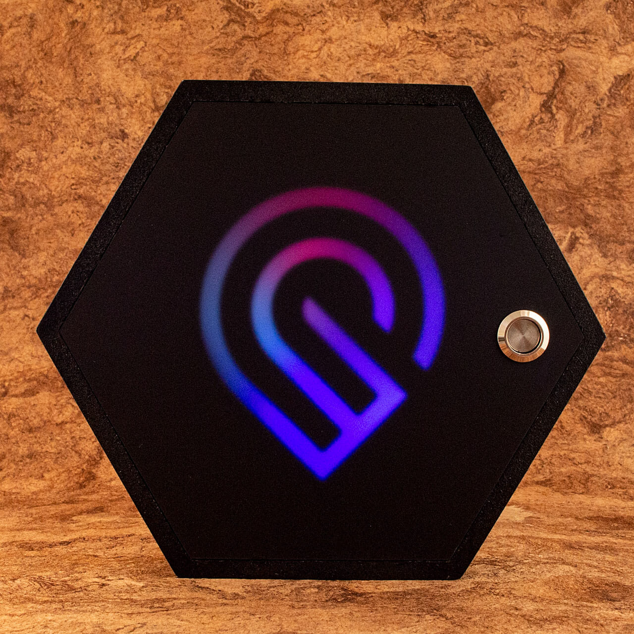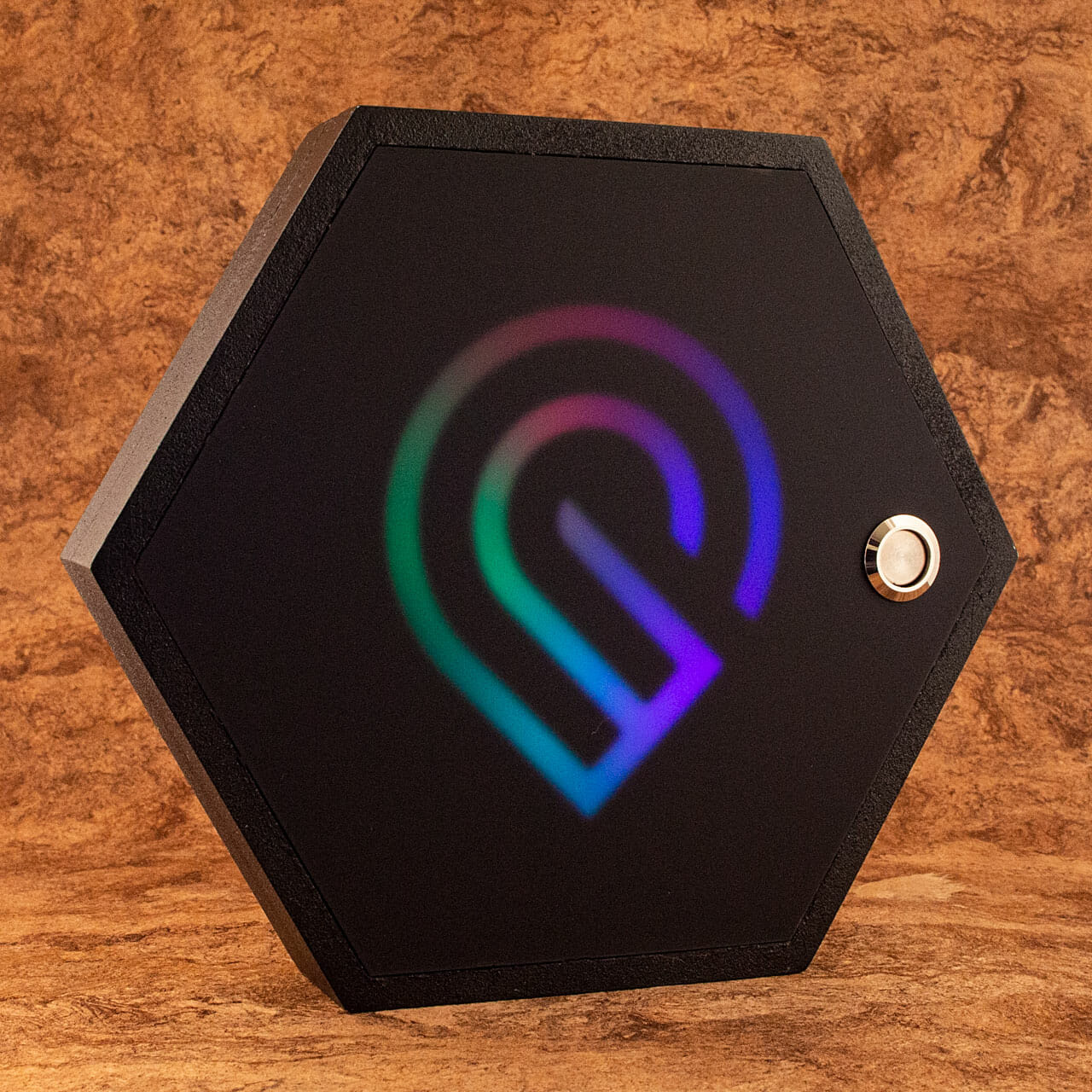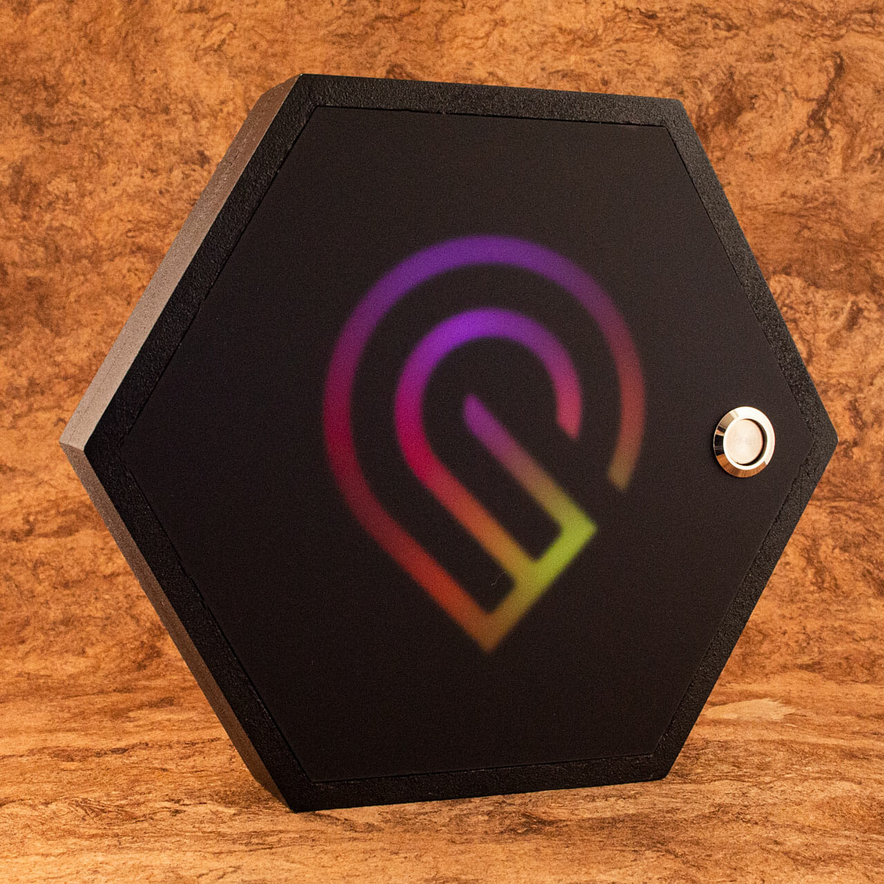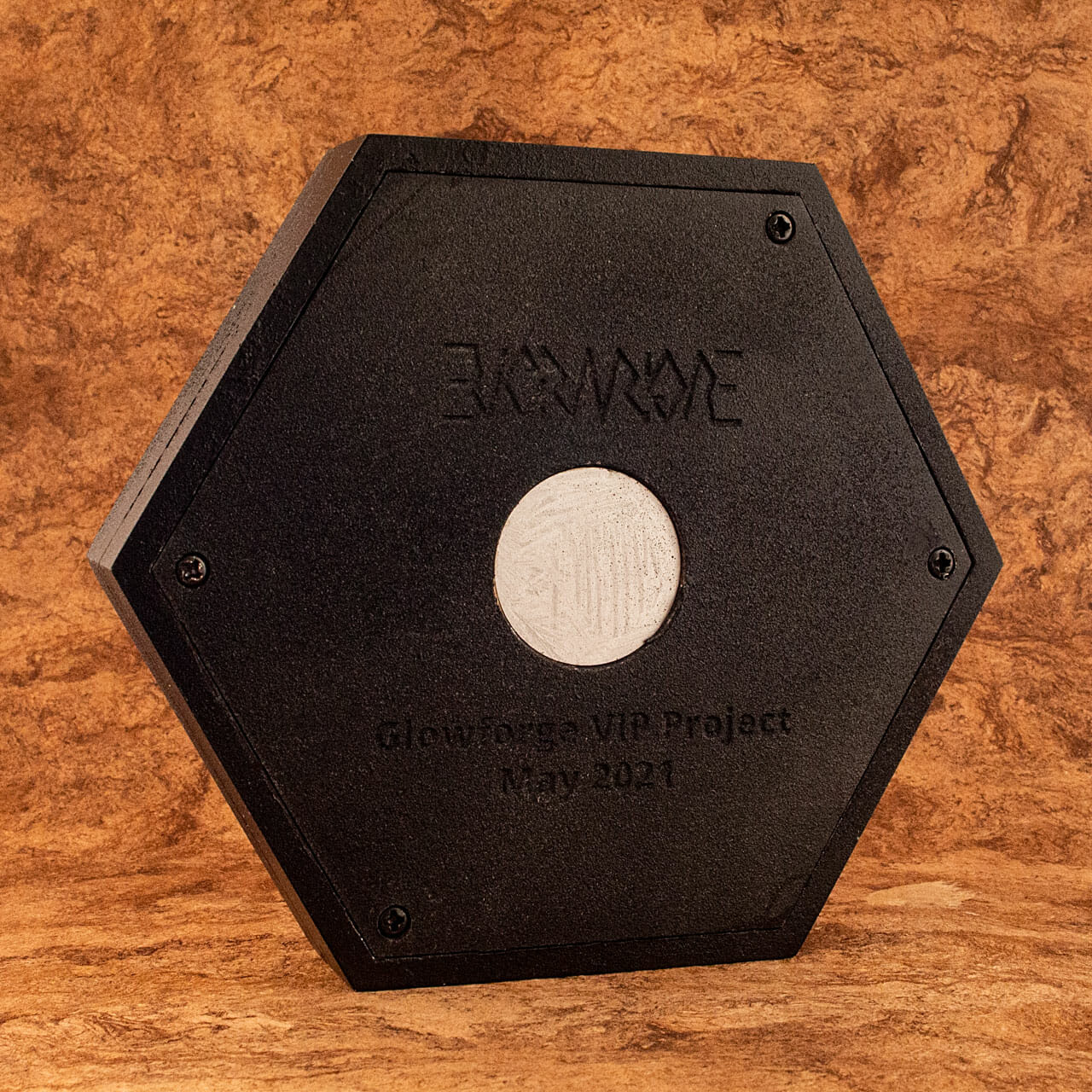 After a very successful Glowforge forum Regular community build of a pentagonal hexecontrahedron last year, we decided to do another community build this year. For this year’s project, we all contributed hexagonal panels intended for a reconfigurable wall art installation. My piece projects a color-cycling Glowforge logo through a layer of LED-translucent black acrylic. Here is a gallery of images with the colors in various states and, a video showing how I made it.