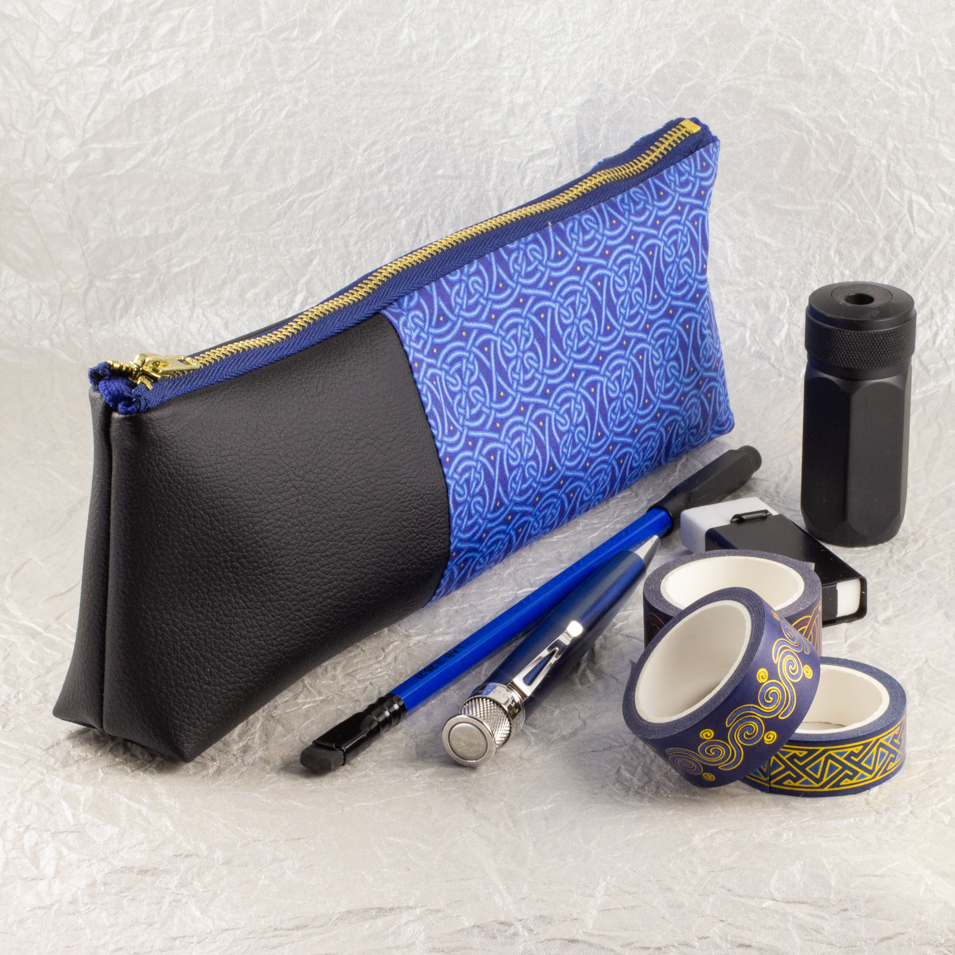 I saw some pencil pouches somewhere, and knowing some people on their way back to school soon, I thought it would be fun to make some with the Celtic art fabric I designed and the eco-friendly cactus leather.