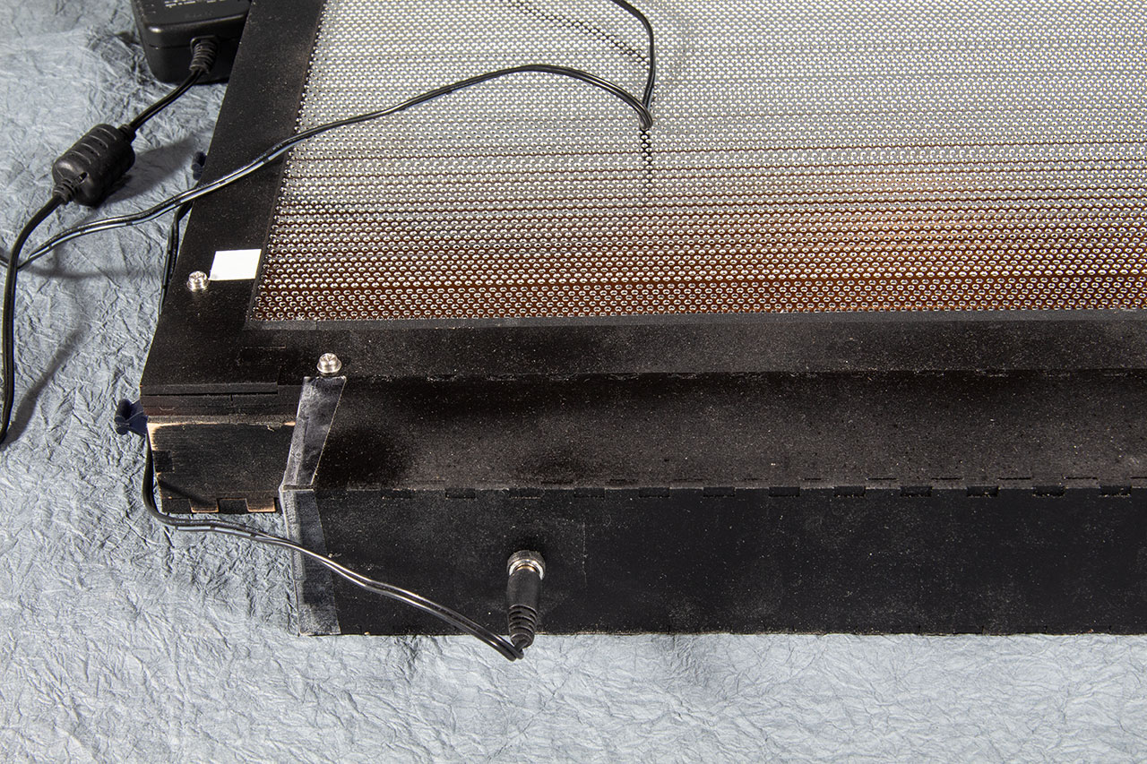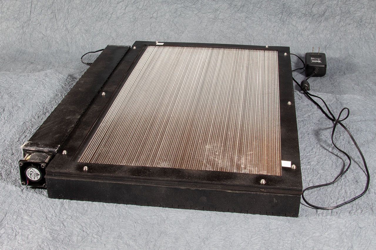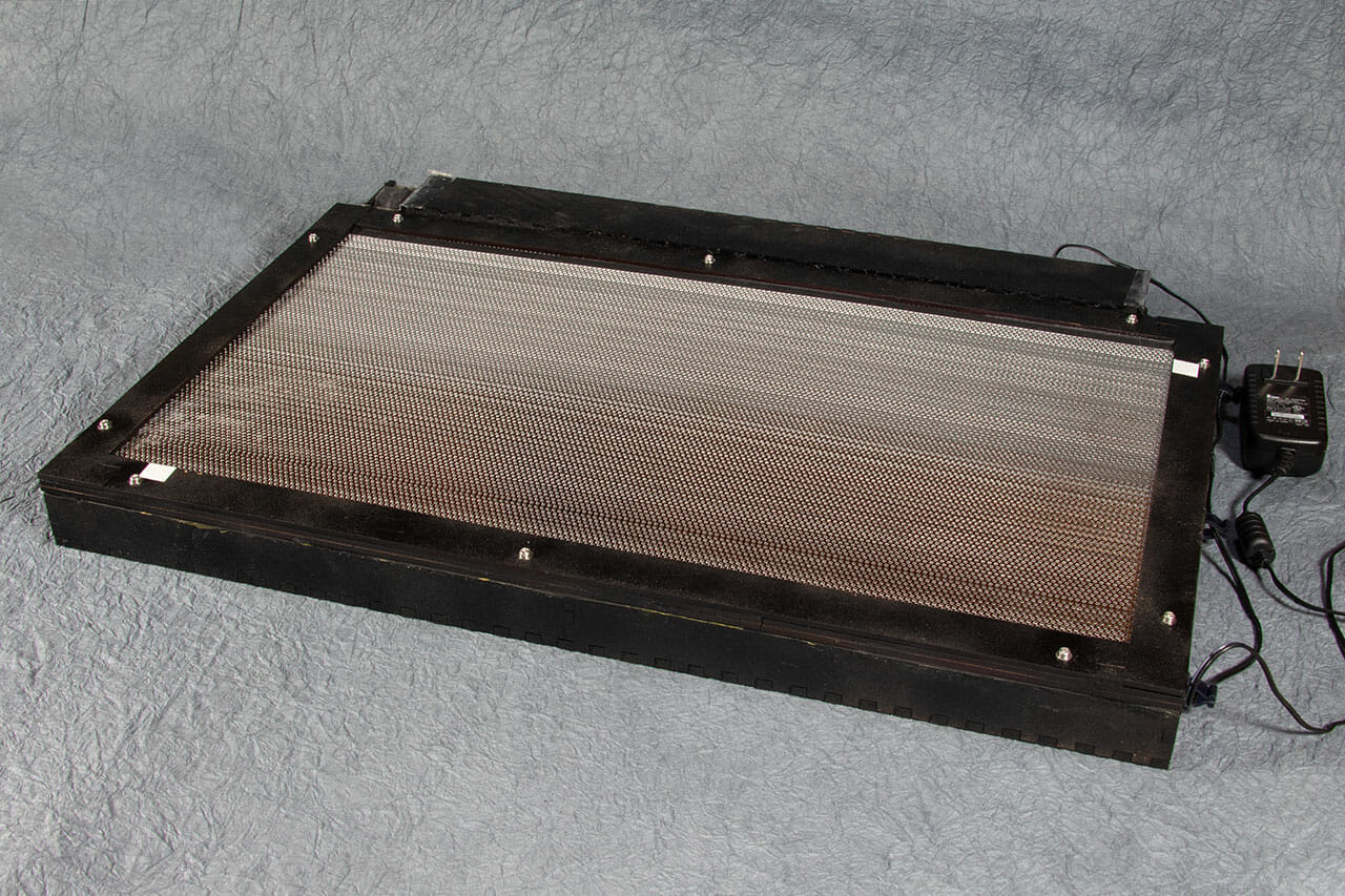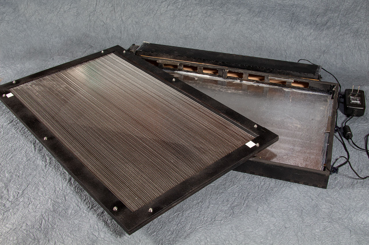 The tray is 1/4” thick MDF. I lined the bottom with aluminum foil for extra protection in case any stray lasering gets through. It’s probably overkill but, I sealed the seams with silicone caulk to reduce air leaks. The cutting surface is a piece of perforated stainless steel plate sandwiched in an MDF frame. That is held down to the rest of the tray using magnets, with an EVA foam gasket to help with air leaks.