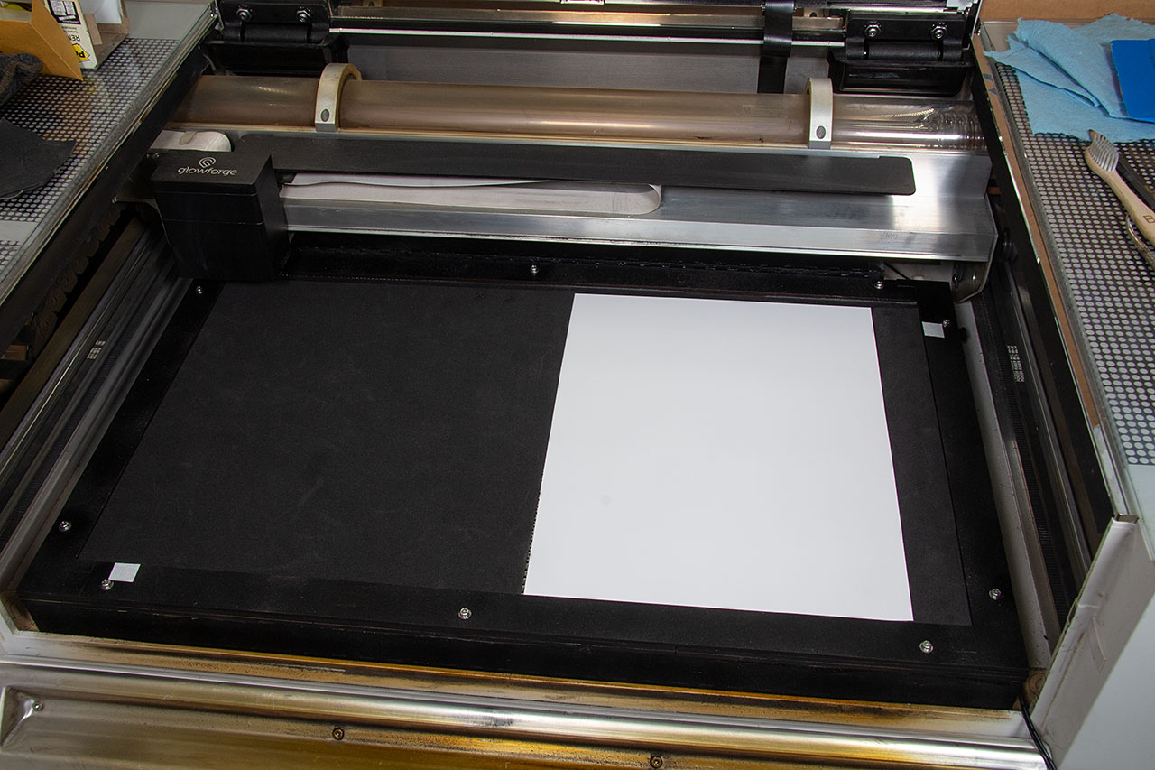 With some laser cutters, you can get a vacuum tray that holds lightweight materials like paper down with controlled airflow. There isn’t one of those for the Glowforge. So, I made my own.