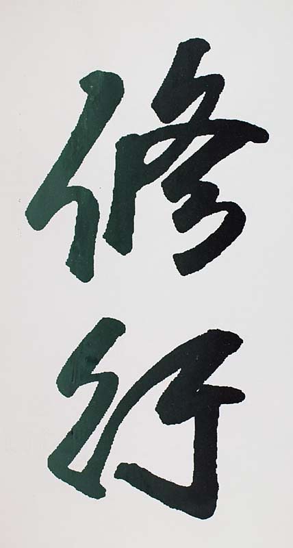 Shugyo Screenprint (Blended Colors)Blended color (green and black) silkscreen print of the Japanese kanji for shugyo (“austere training”) on paper. 10" by 5.25". This was a practice print for a run of t-shirts with the design printed on the (wearer's) left side of the chest. Based on original kanji by Sensei Tsuneji Sakakibara.