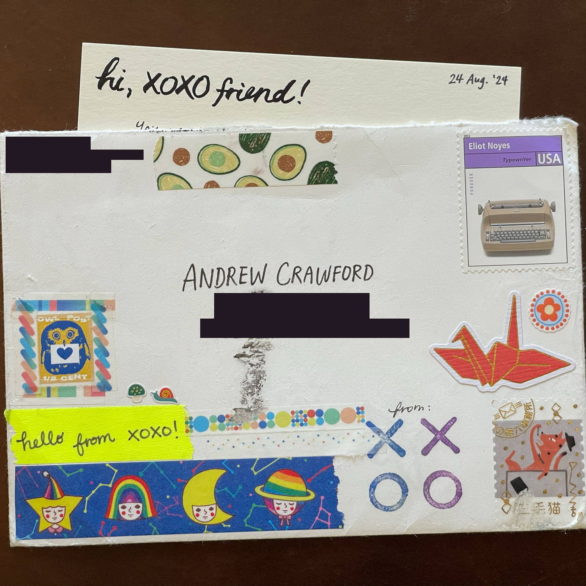[…] Andrew Crawford collected the usages of his XOXO stamp. His post includes mine and mine is in fine company. […]